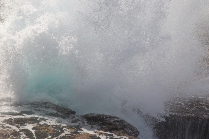 Die Hitze macht unheimlich träge. Aber wenigstens sind wir heute wieder mal in einen Nationalpark gefahren, mit dem Ziel, kleinere Strecken zu laufen. Doch die erbarmungslose Sonne von oben verkürzte auch noch die geplanten Laufstrecken auf ein absolutes Minimum. Wir besuchten den Shete Boca Park - einen Küstenpark an der Luvseite der Insel. Die See kochte förmlich aufgrund der Brandungswellen, die gegen eine zerklüftete Steilküste brausten.